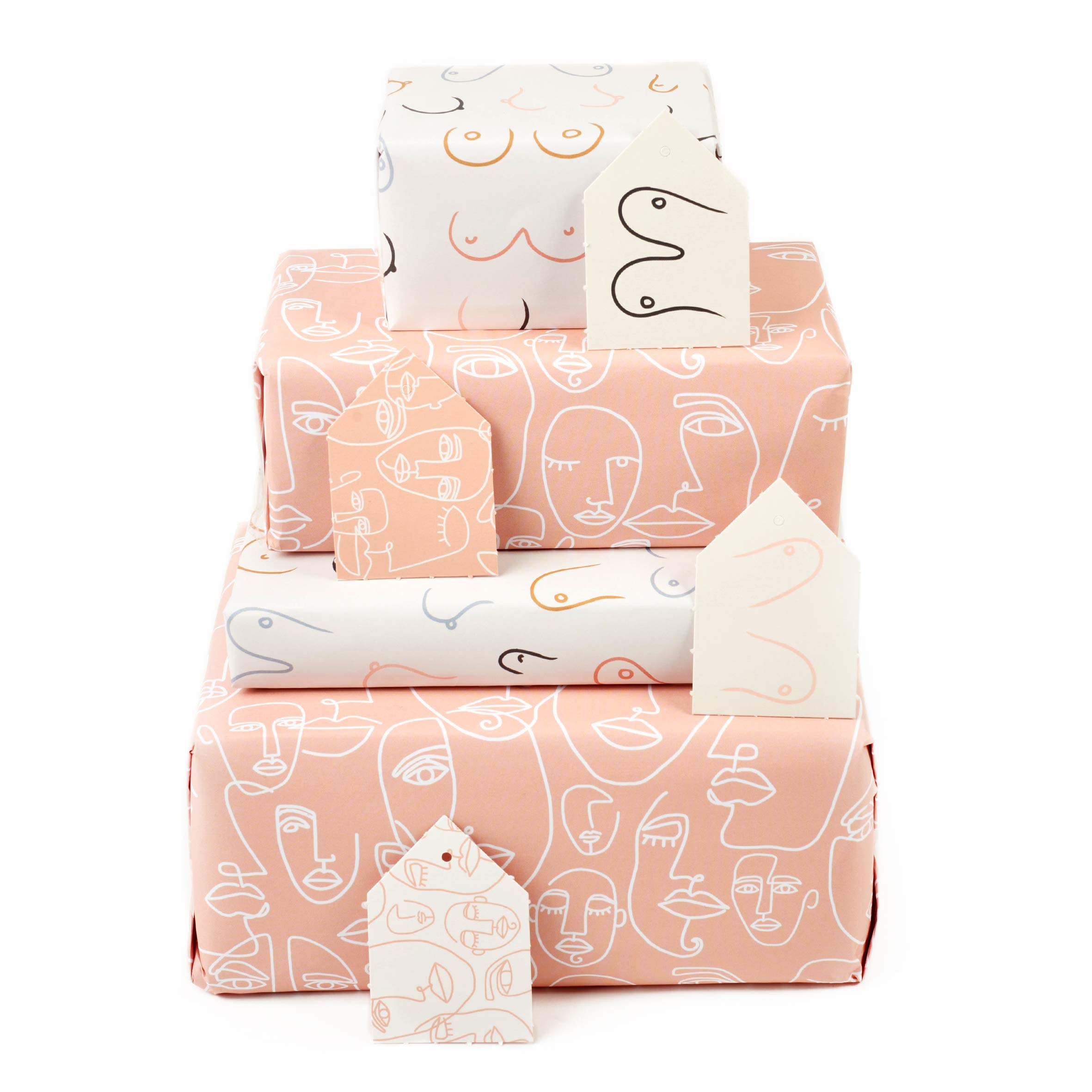 Amazon Com Central 23 Wrapping Paper For Women 6 Sheets Of Fun Giftwrap Rude Boob Print Pastel Pink Faces Birthday Gift Wrap Recyclable Health Household